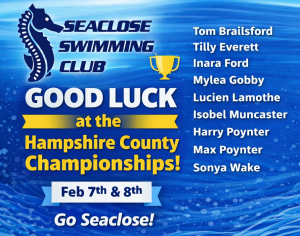 Well done to all of our County Qualifiers for 2026. The first weekend of competition saw Tom, Tilly, Inara, Mylea, Lucien, Isobel, Harry, Max and Sonya competing in Winchester. Great swims all round with swimmers reaching lots of finals and Isobel becoming the Hampshire County Champion for 2026 in the 50 Breaststroke.